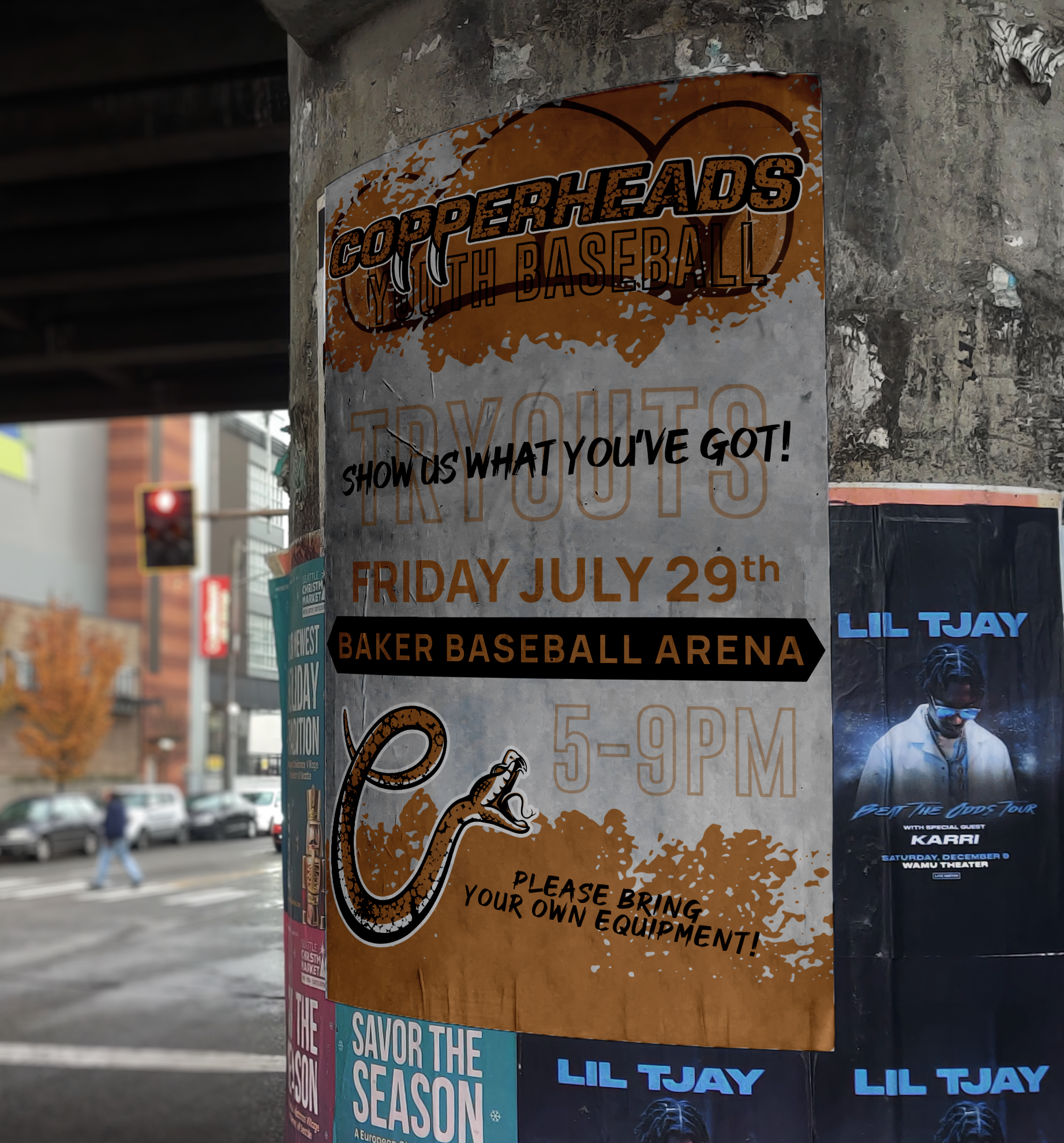 I was approached to make a logo for a baseball team in Central Maryland called the Copperheads. The client requested a snake-like C for the logo. I wanted the final product to have that high-contrast, high blackpoint look that pro team logos often have, so I kept that in mind when designing and placing the shadows and highlights.